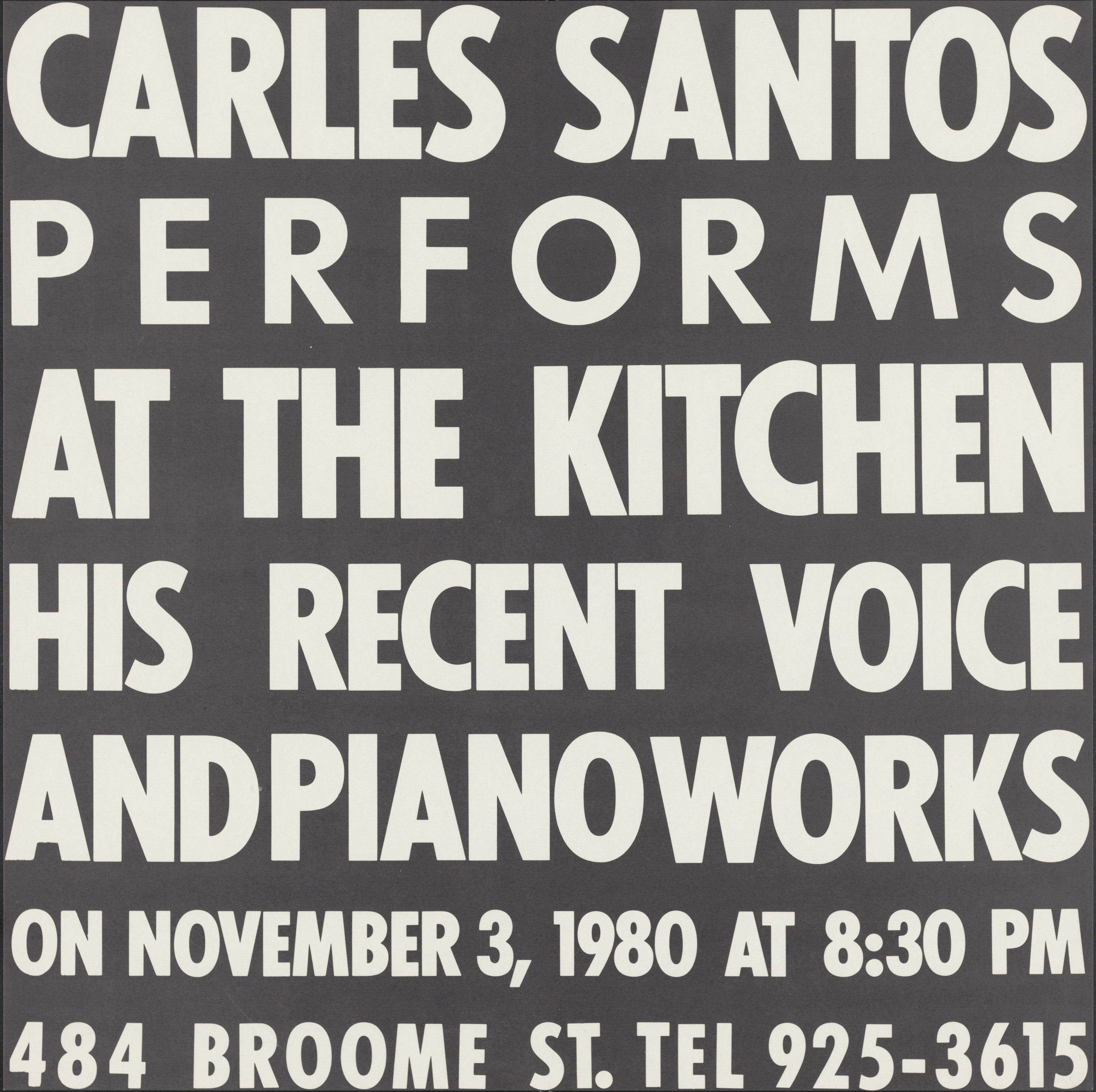 Carles Santos Performs At The Kitchen His Recent Voice And Piano Works On November 3, 1980 At 8:30 PM