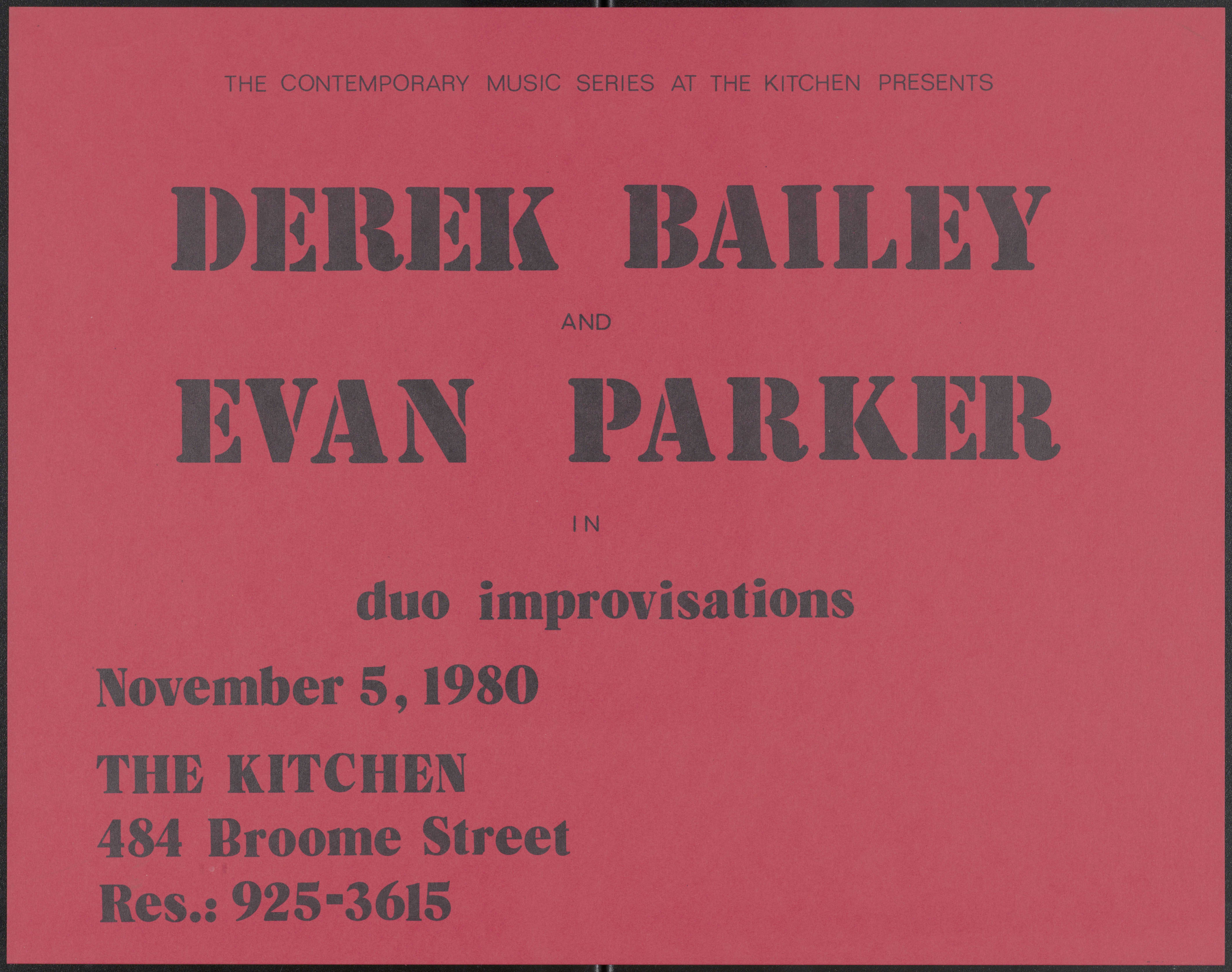 The Contemporary Music Series at The Kitchen Presents Derek Bailey and Evan Parker: duo improvisations