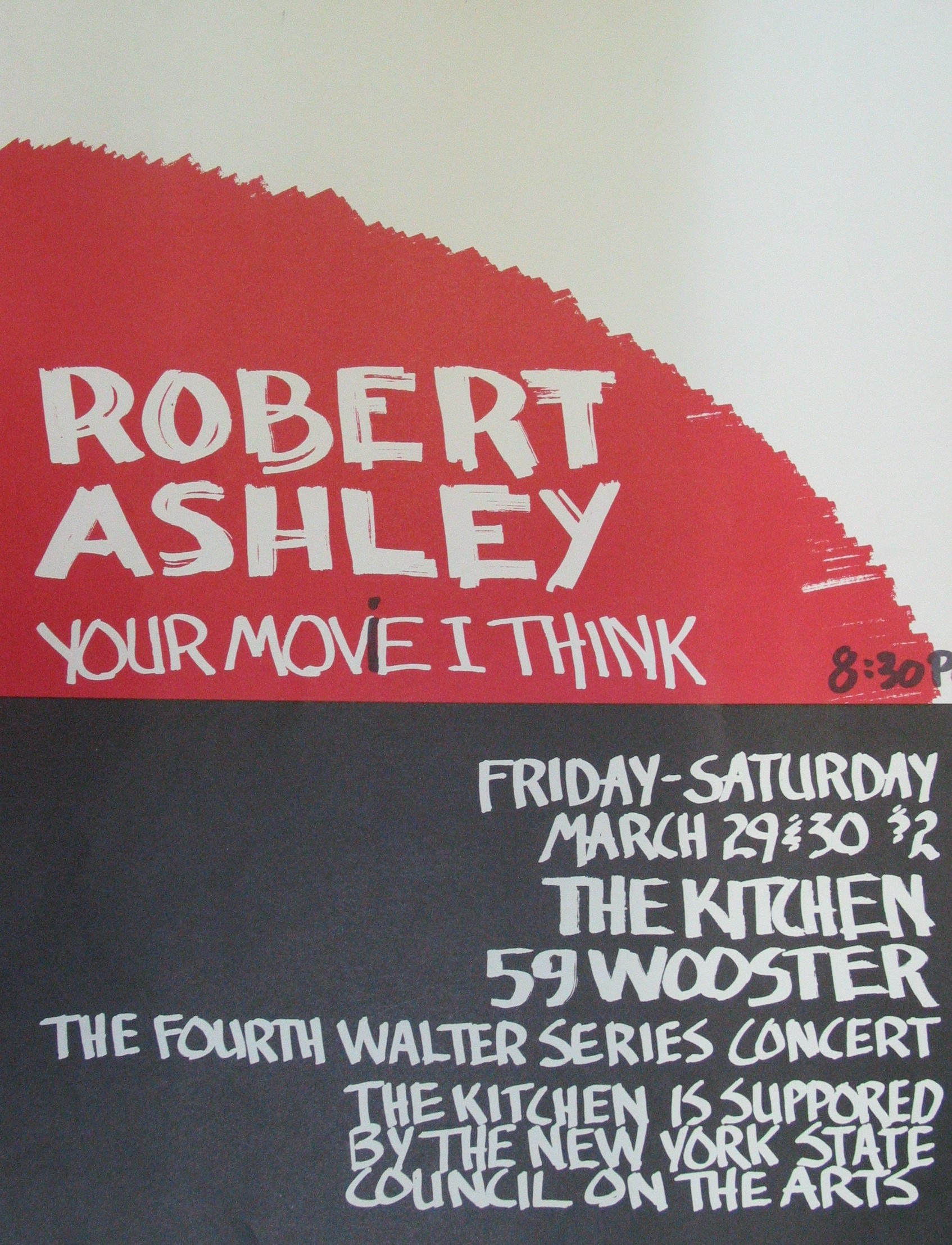 Empire was performed by four participants: Robert Ashley and Thomas Buckner, who acted at The Kitchen, as well as Sam Ashley and Jacqueline Humbert, who performed on live video from Santa Monica, California. It was for this innovative use of technology and social connectivity that Empire was included in The Kitchen’s 1995 performance series, Through the Distance: Musical Connections.