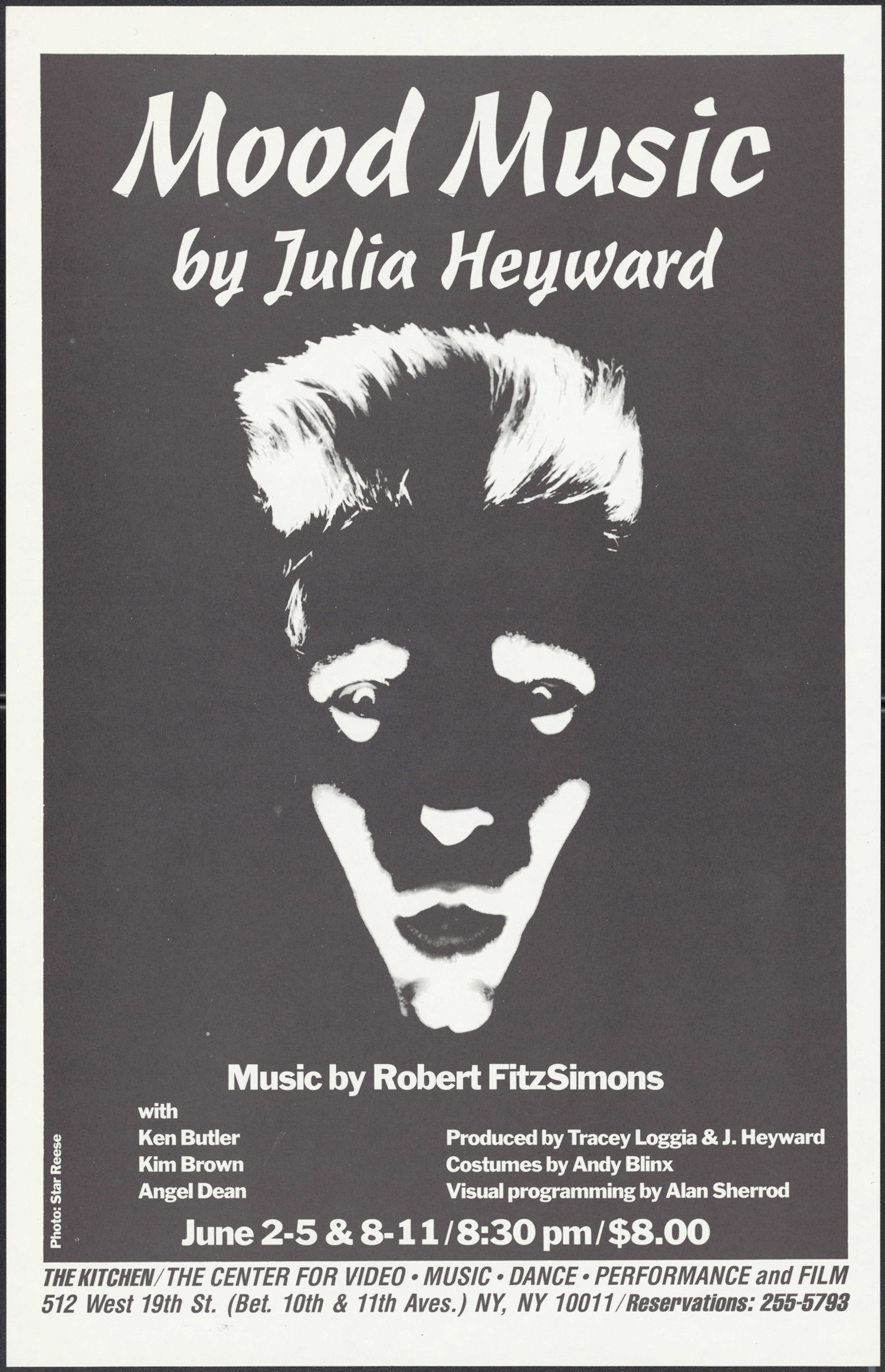 Mood Music by Julia Heyward; Music by Robert FitzSimmons with Ken Butler, Kim Brown, Angel Dean; Produced by Tracey Loggia + J. Heyward; Costumes by Andy Blinx; Visual programming by Alan Sherrod. June 2-5 + 8-11 / 8:30 pm / $8.00. Photo: Star Reese
