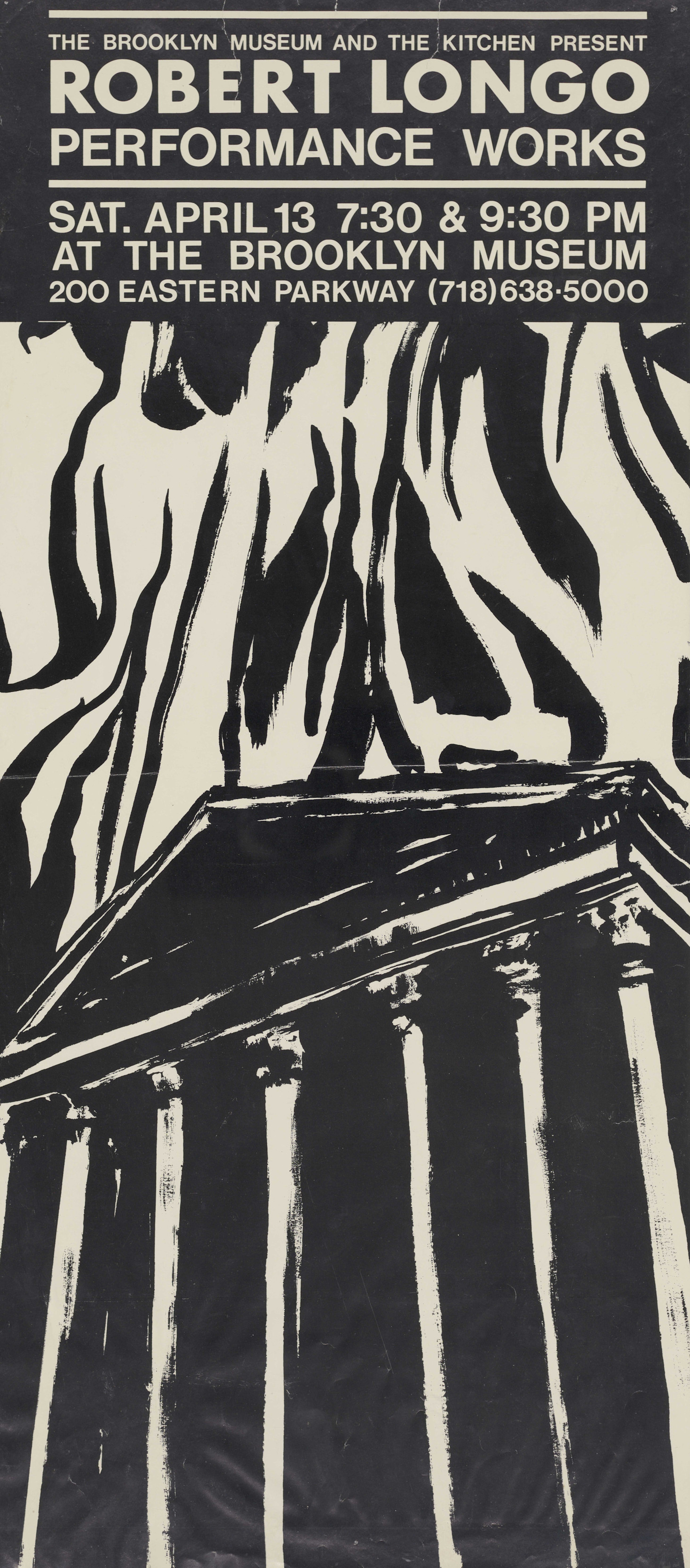 A co-production with The Brooklyn Museum, Performance Works 1977-1985 coincided with Robert Longo’s installation Temple of Love in The Brooklyn Museum’s lobby.