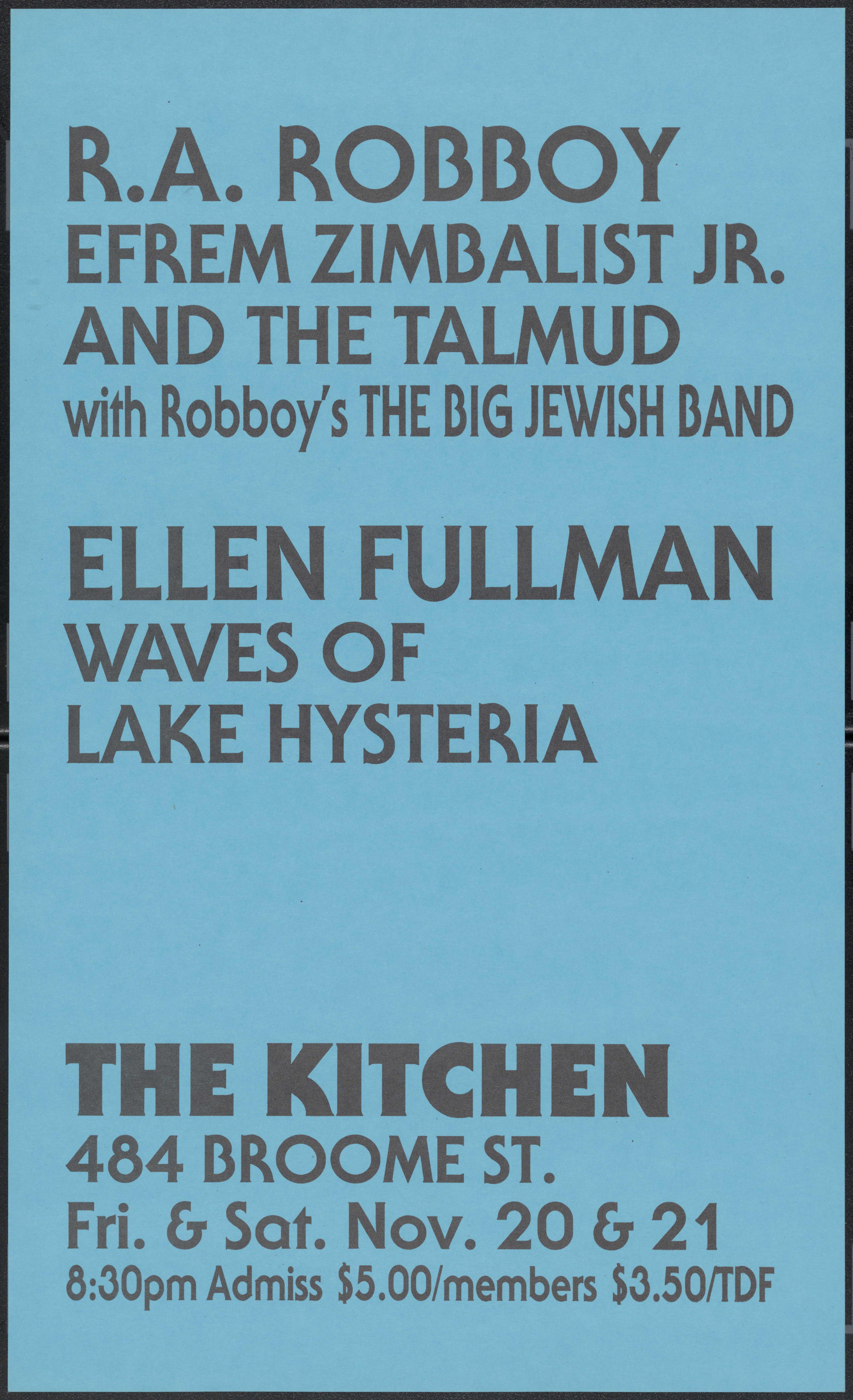 R.A. Robboy: Efrem Zimbalist Jr. And the Talmud with Robboy's The Big Jewish Band, Ellen Fullman: Waves of Lake Hysteria