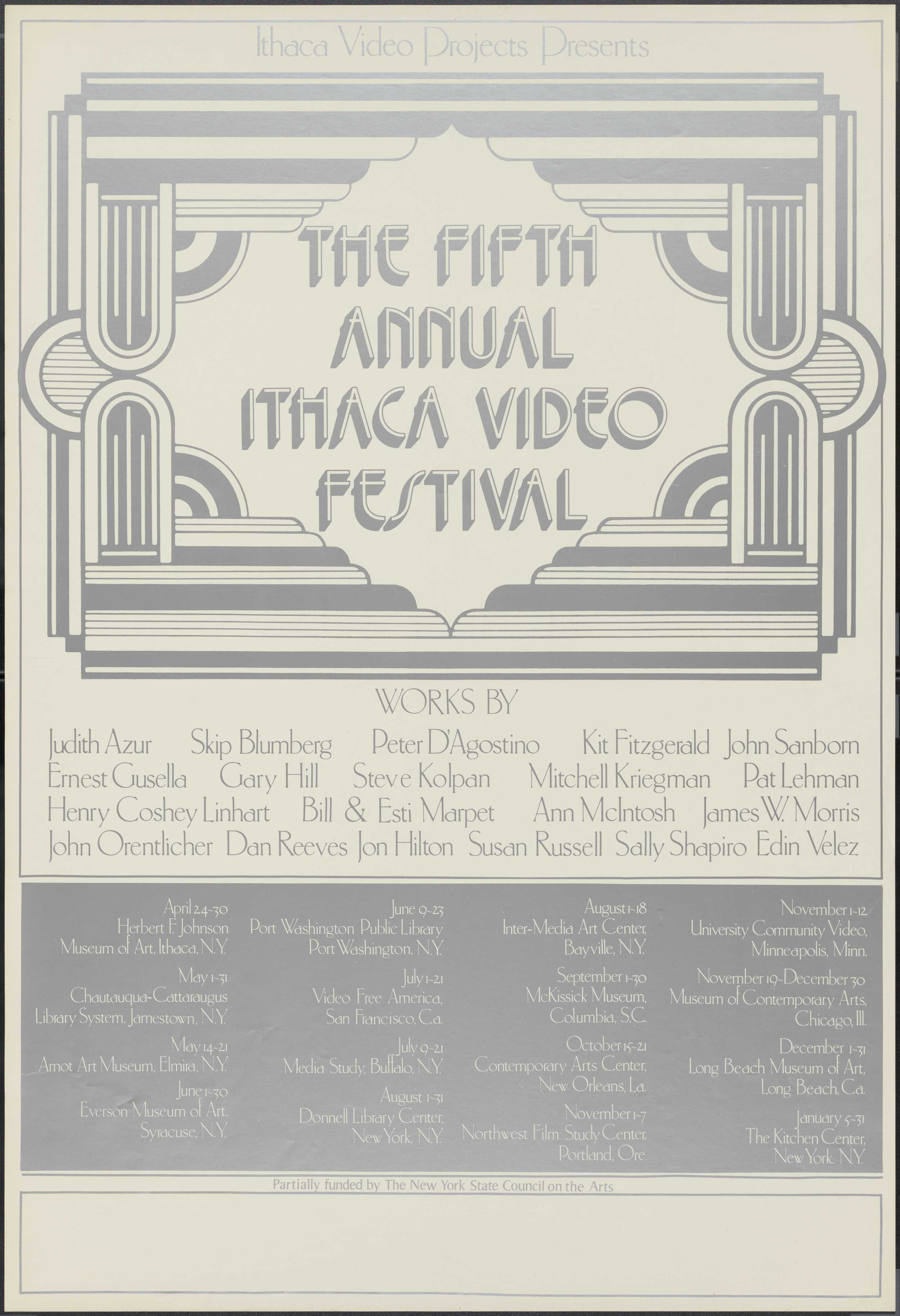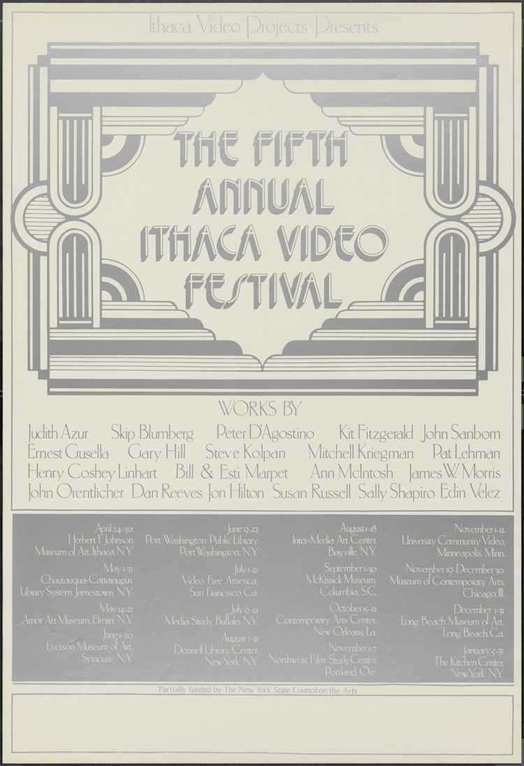 Artist(s): Judith Azur, Skip Blumberg, Peter D'Agostino, Kit Fitzgerald, John Sanborn, Ernest Gusella, Gary Hill, Steve Kolpan, Mitchell Kriegman, Pat Lehman, Henry Coshey Linhart, Bill & Esti Marpet, Ann McIntosh, James W. Morris, John Orentlicher