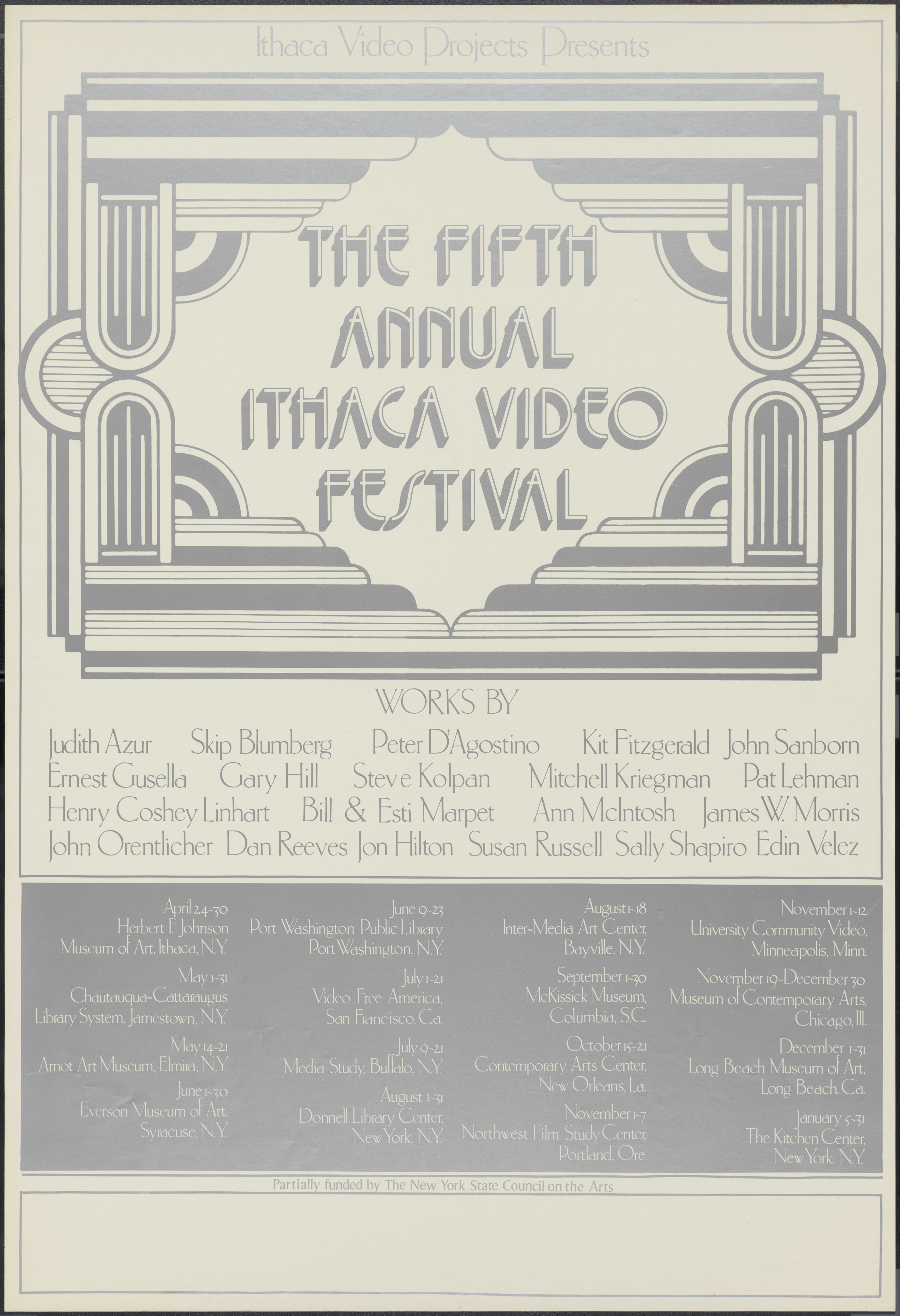 Artist(s): Judith Azur, Skip Blumberg, Peter D'Agostino, Kit Fitzgerald, John Sanborn, Ernest Gusella, Gary Hill, Steve Kolpan, Mitchell Kriegman, Pat Lehman, Henry Coshey Linhart, Bill & Esti Marpet, Ann McIntosh, James W. Morris, John Orentlicher
