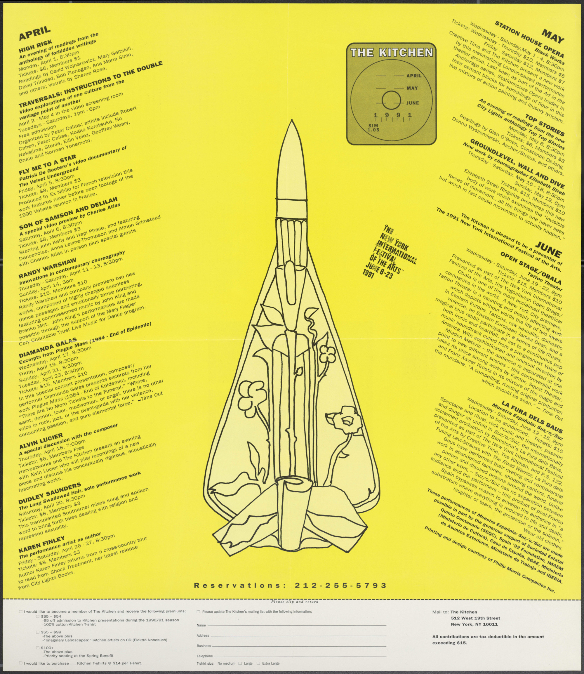 Artist(s): Diamánda Galás, Alvin Lucier, Dudley Saunders, Karen Finley, La Fura Dels BausDate: April 1, 1991-June 15, 1991