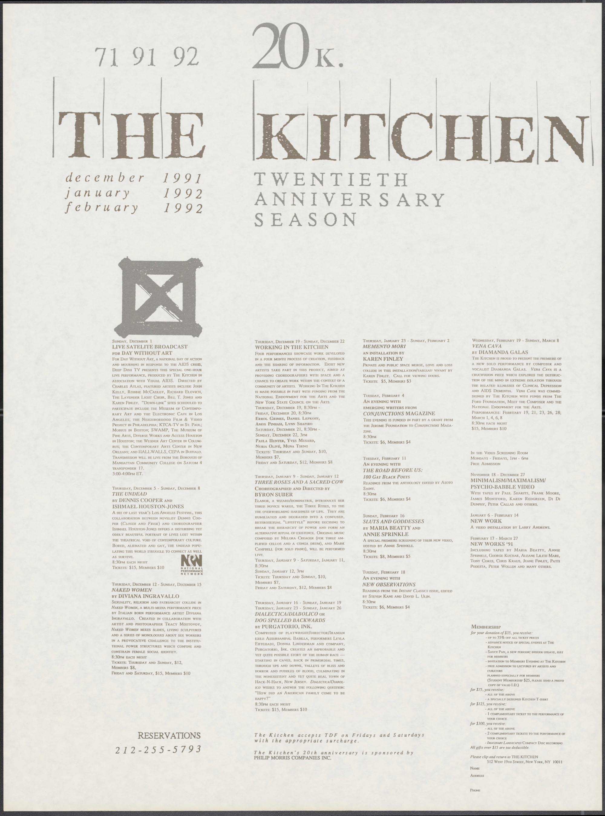 Artist(s): Robbie McCauley, John Cage, Barbara Rosenthal, Meg Stuart, Anne Teresa De Keersmaeker