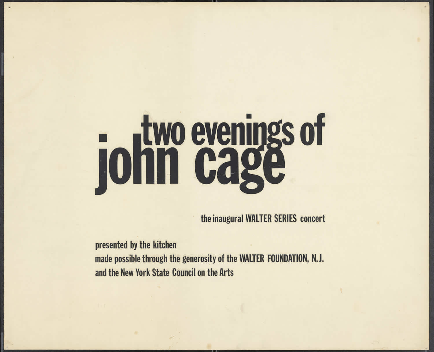 Two Evenings of John Cage. The Inaugural Walter Series Concert presented by The Kitchen, made possible through the generosity of the Walter Foundation, N.J. and the New York State Council on the Arts.