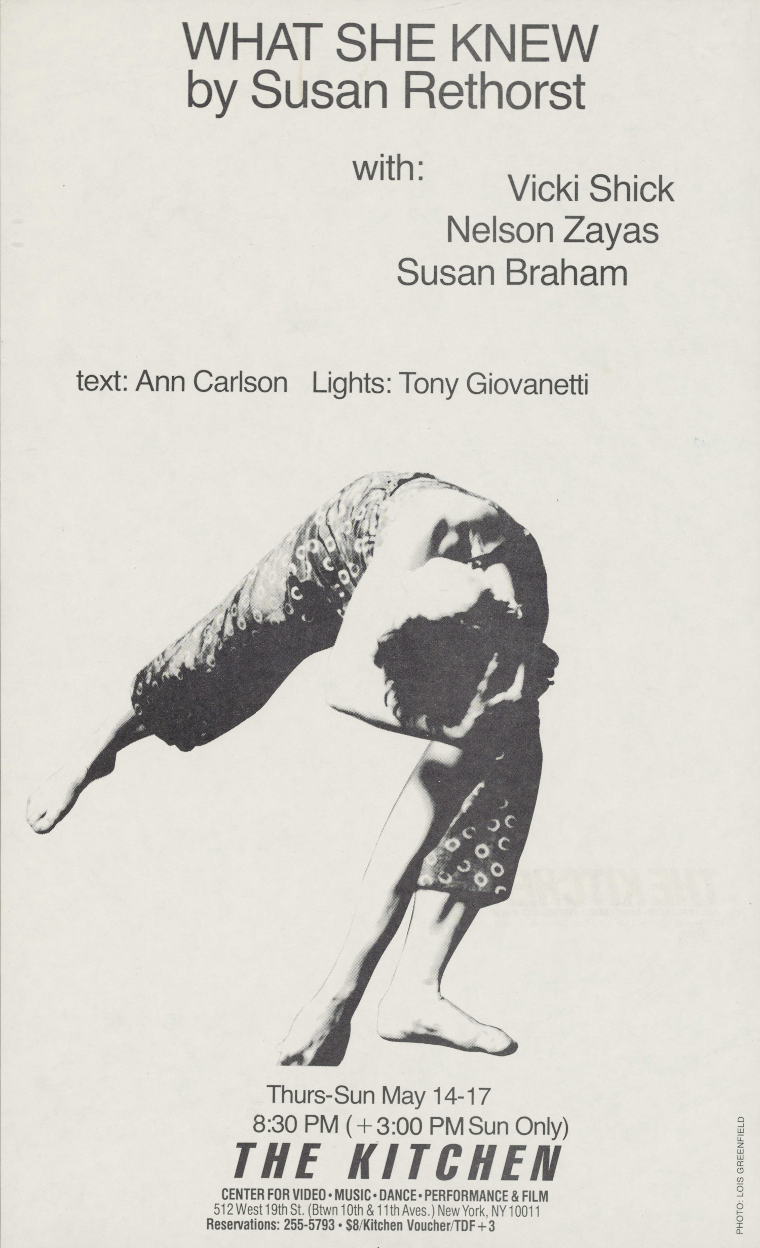 Artist(s): Susan Rethorst, Vicki Shick, Nelson Zayas, Susan Braham, Ann Carlson, Tony Giovanetti.