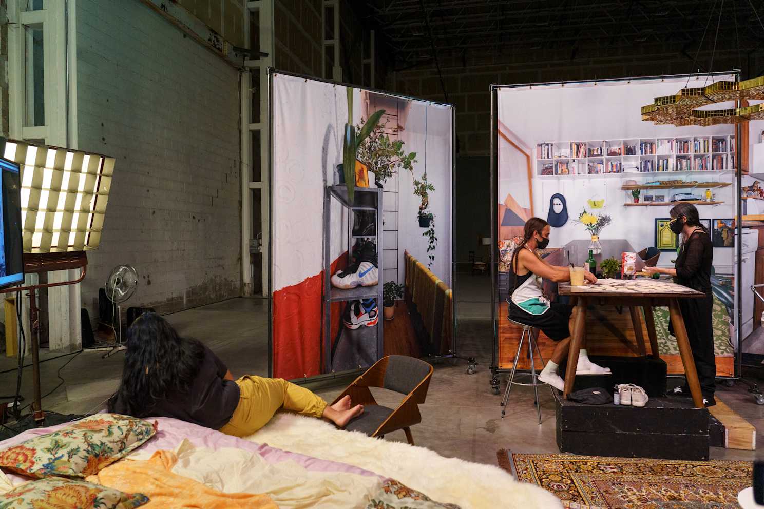Queenslab is an enormous space. We were able to work in it through the generosity of our collaborators there, Jim Hodges’s studio. And we were working in masks the entire time other than the shoots. I want to give a shout out to Mariana Catalina, who is our incredible stage manager and COVID supervisor.