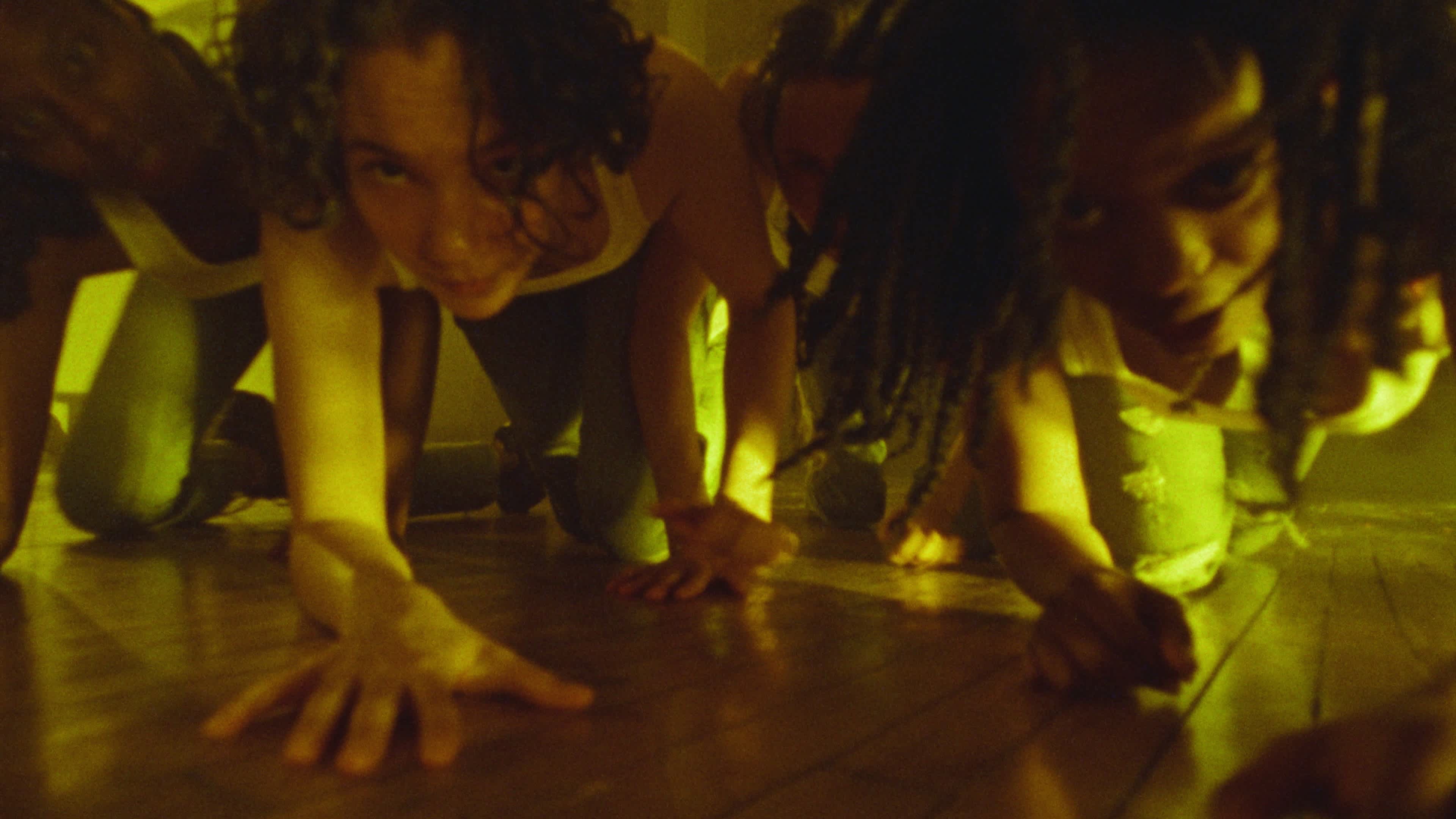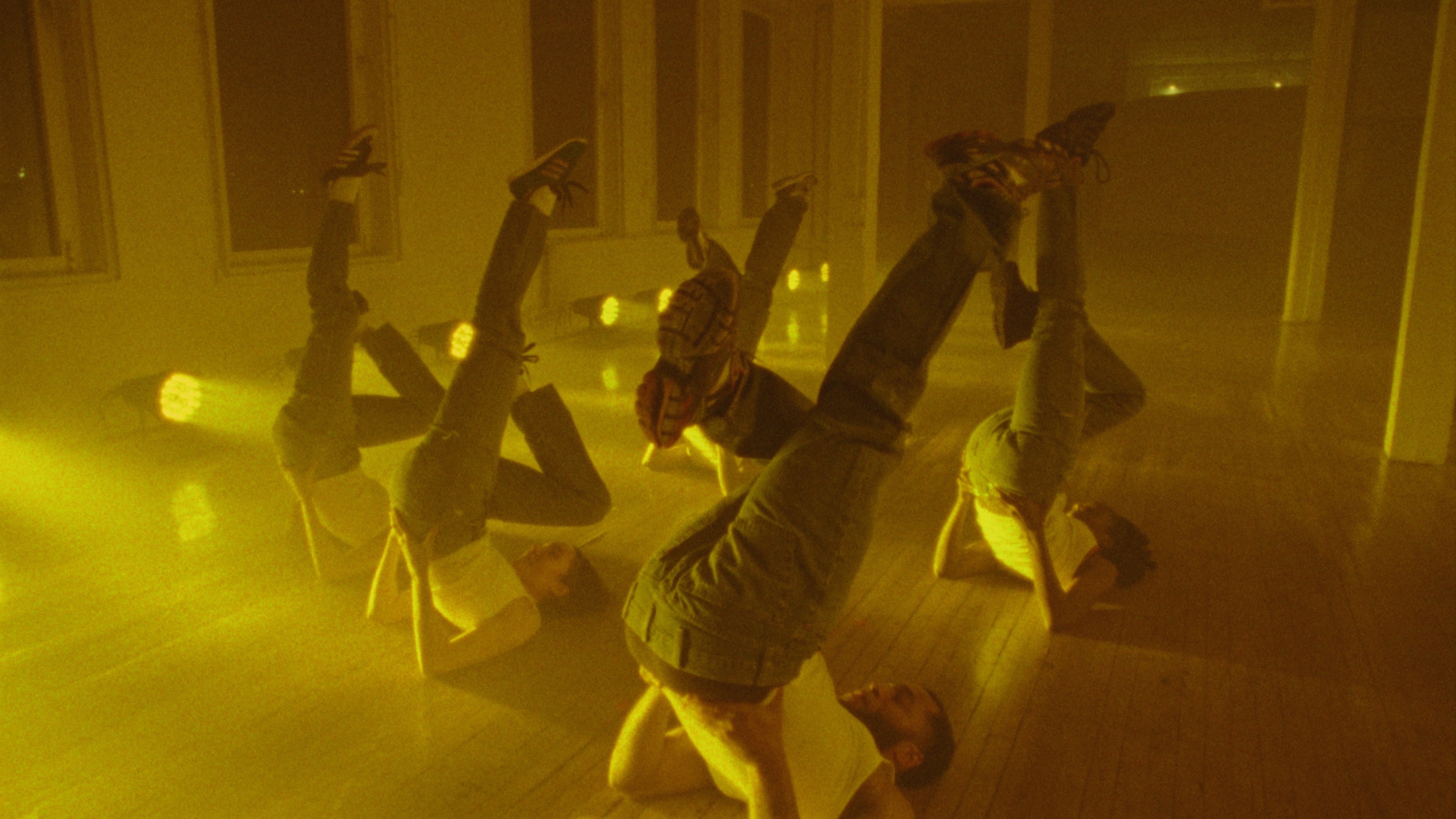 there are moments that attend directly to the subwoofer and bass as a kind of primal scene, where vibration catalyzes entanglement. that low frequency space gathers bodies through shared sensation. the queer scene of the club becomes a source of inspiration as a condition where a queer commons can form through negotiations of rhythm, desire, and duration. queerness, here, is always under development, continually forming in response to conditions that do not carry it forward. it builds its own collectivities and transits through selected kin. within the work, intimacy moves across the group rather than settling into pairs, opening other configurations of attachment and desire that are held collectively over time.