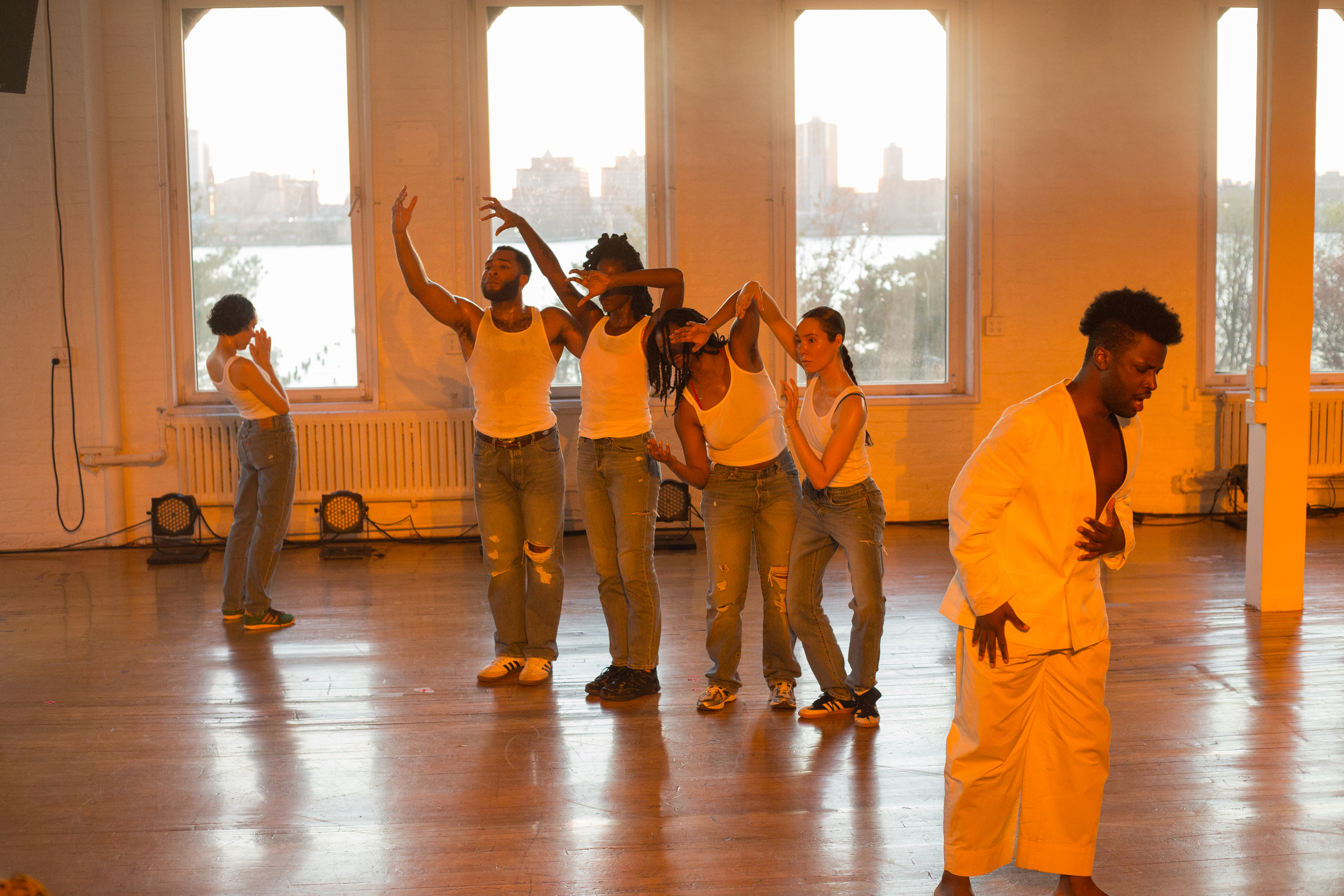 the meteorological pulse in the work is both literal and affective: shifts in light, heat, density, and sound that register as shifting conditions of the loft as weather moving through the body. the performers track these micro-climates through variable negotiations of groupings always in relation to the passage of the sun on and in the vanishing point. similarly, i am surfacing the motif of meteorological events in nineteenth-century american landscape painting to their historical significance as an artistic response to fears of black reconstructionism and, in particular, the Haitian revolt. in this way, the circumstance of events like meteor showers, tumultuous storms, dense overcast, and celestial auroras are in themselves artifacts of black assembly and insurgency in the euro-american psyche.