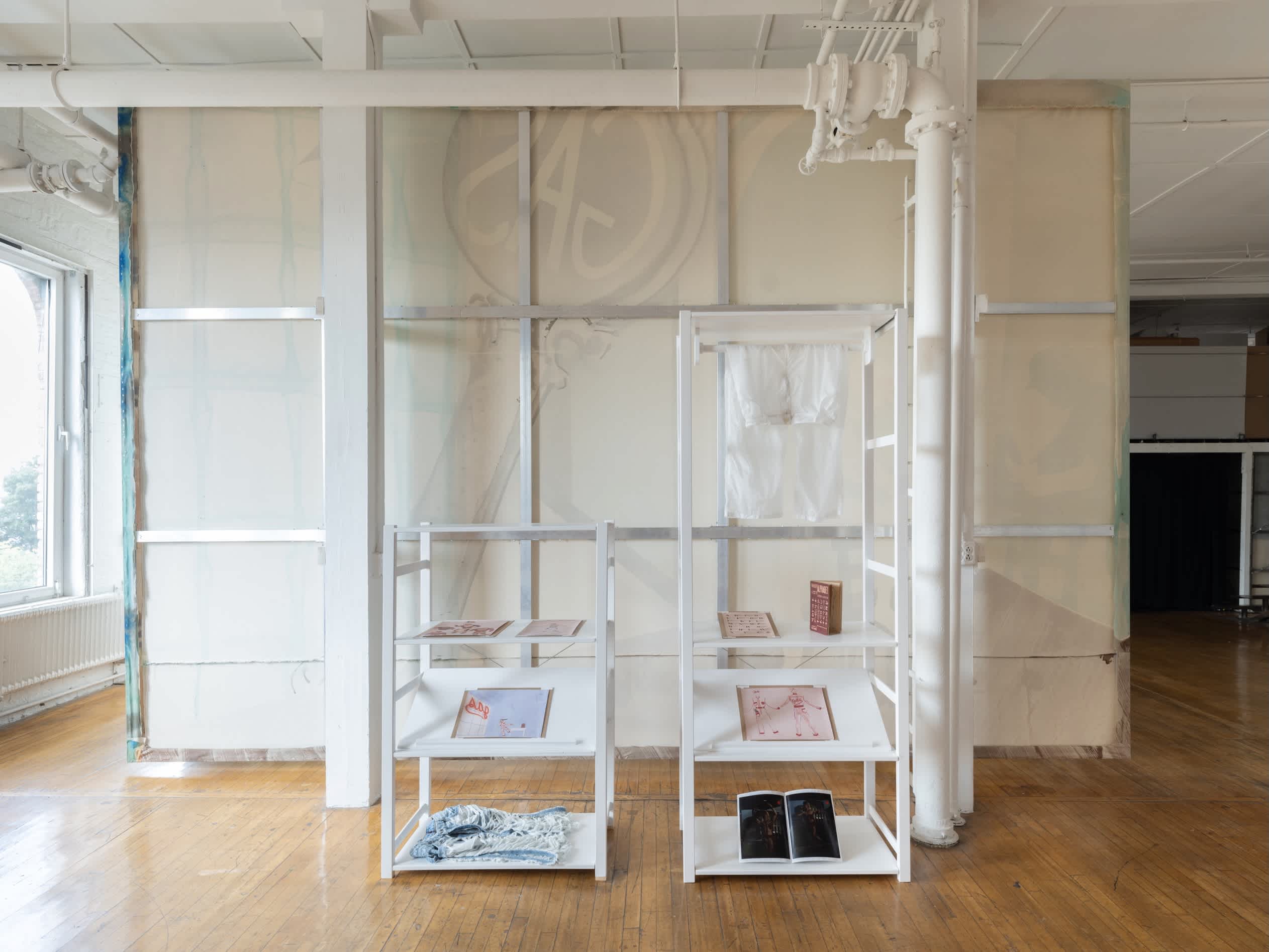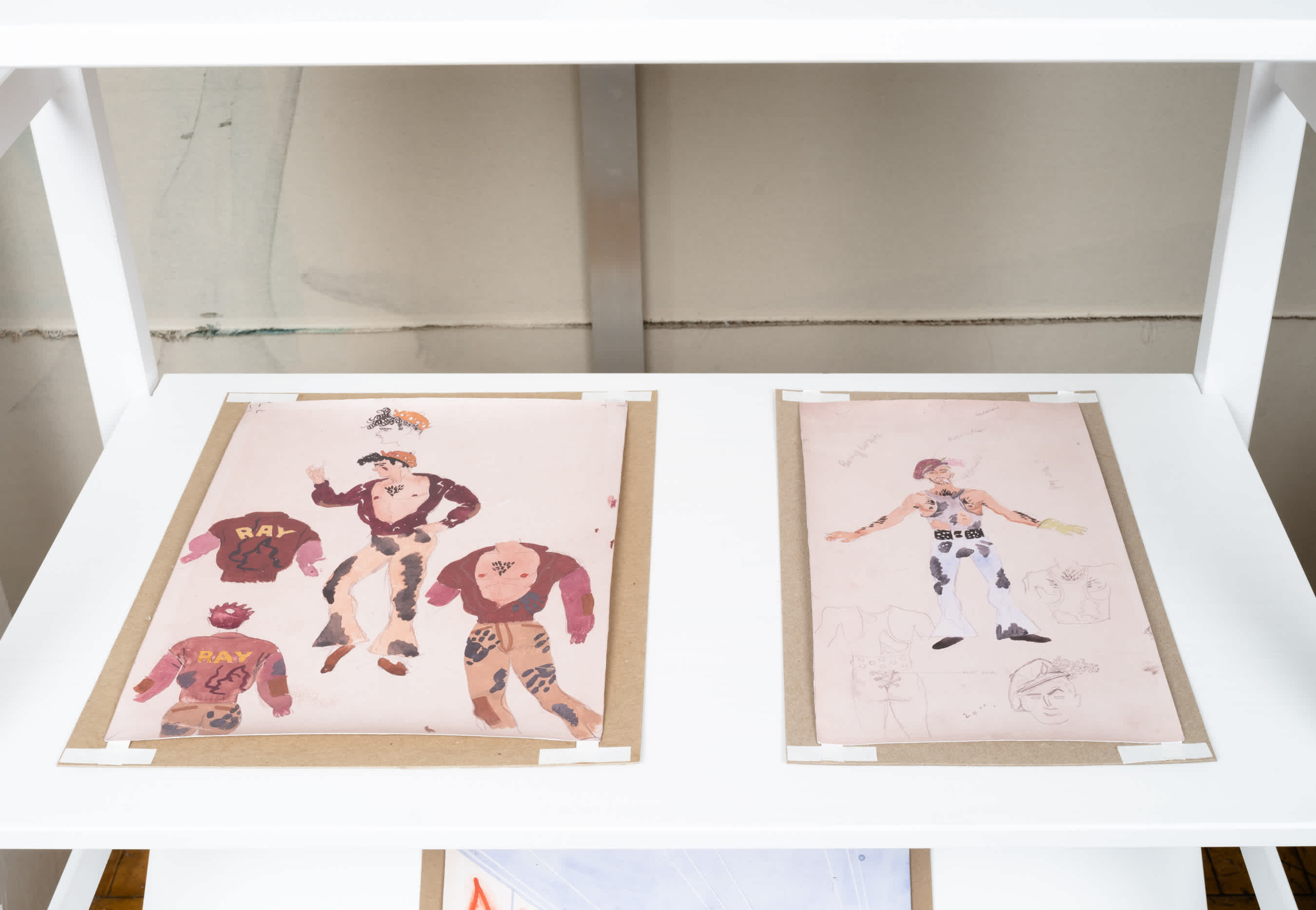 I'm not a specialist in using archives as an artistic palette, but I do think that my relationship to art production across many different mediums is a relationship to a kind of historical object and trans historical motif. This is something I've also explored in ceramics, and something I've explored in painting and also in past performances. The use of the archive in this sense is in a way, a type of illustration of the way that this piece as a whole comes into existence. It’s both a kind of window—to quote in a way things that have been haunting me for many years—like the idea of Jose Esteban Muñoz’s Cruising Utopia window. That window is something that's built out of the archive material. I think when you look through that material, you can arrive at seeing the image behind the window, which is all of the work produced in the show. It's sort of like the archive itself and the exhibition is a merging of time.