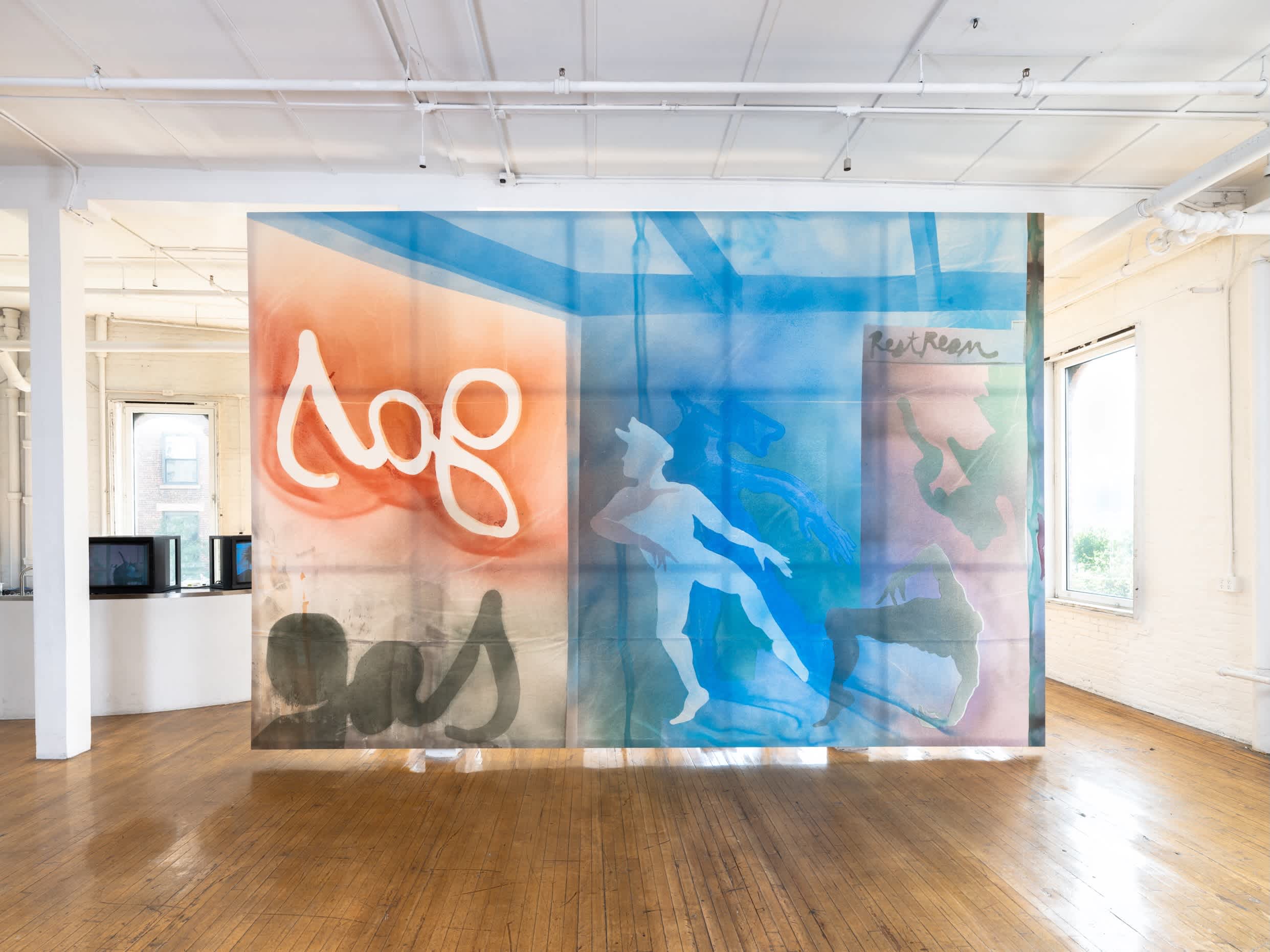 Matthew, your paintings collapse the idea of a stage inside of a painted space. They become a platform, a space of representation, an indexical object. The works are also creating a refigured and culminating site for research—gestural, visual, tactile, architectural references that emerge at an overwhelming scale, drawn from your time spent with the visual archival materials across institutions. It was really breathtaking to see and feel the dancers explore and develop movement within a loft and translation of paintings, how painting might grow out of and translate performance.