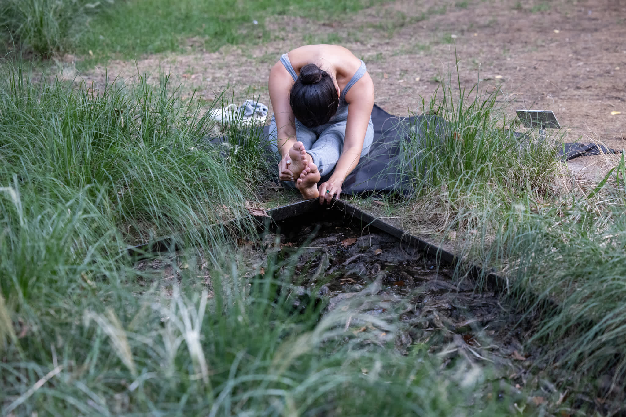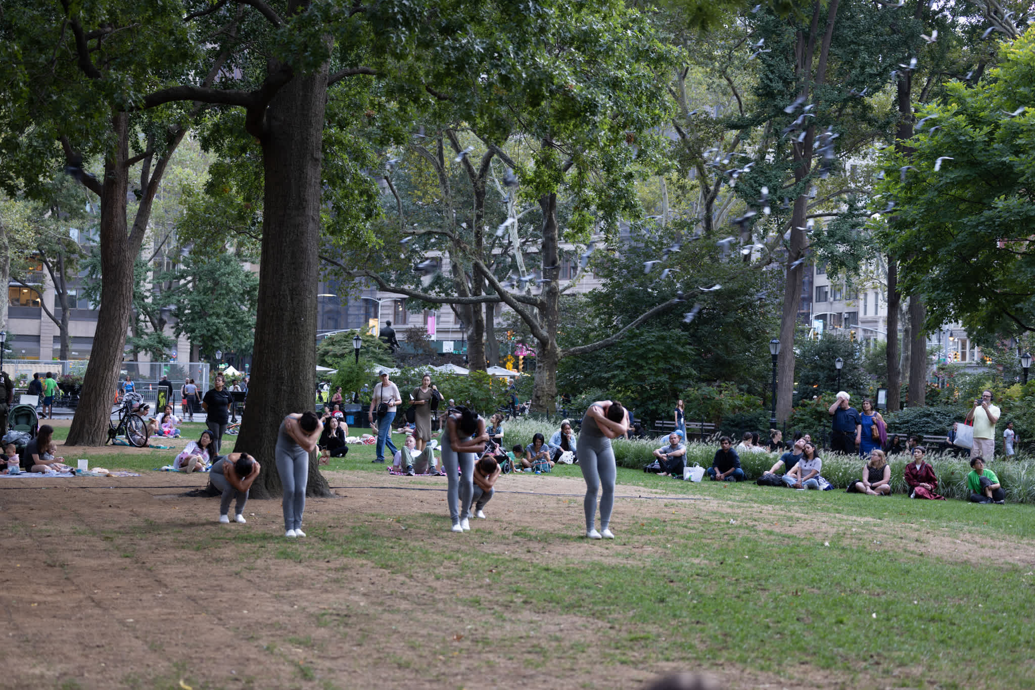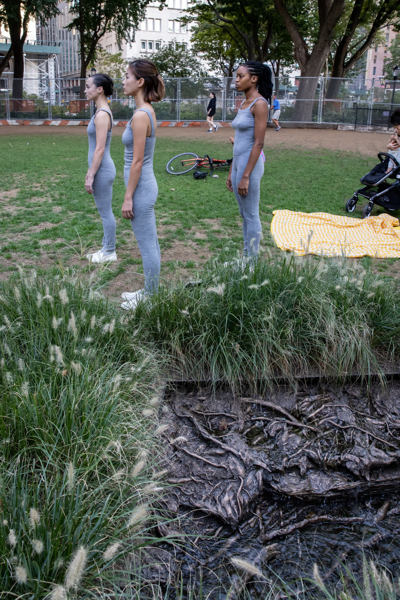In 2022, The Kitchen partnered with Madison Square Park Conservancy to present the performance Shadow of the Sea by Beau Bree Rhee on three occasions between September and October. This new performance, conceived in dialogue with Cristina Iglesias’s exhibition Landscape and Memory at Madison Square Park (June–December 2022), brought live performance outside the walls of The Kitchen and into the public spaces of the park and city streets. Shadow of the Sea took shape as what Rhee called a “dance poem” composed of eight unique stanzas. Following an initial stanza in the form of a migratory score that began simultaneously on the east and west coasts of Manhattan, the remaining seven sections of the piece unfolded on the Oval Lawn in Madison Square Park, where Iglesias’s exhibition was installed. Video documentation of the piece is available to view in the On Screen section of the website.