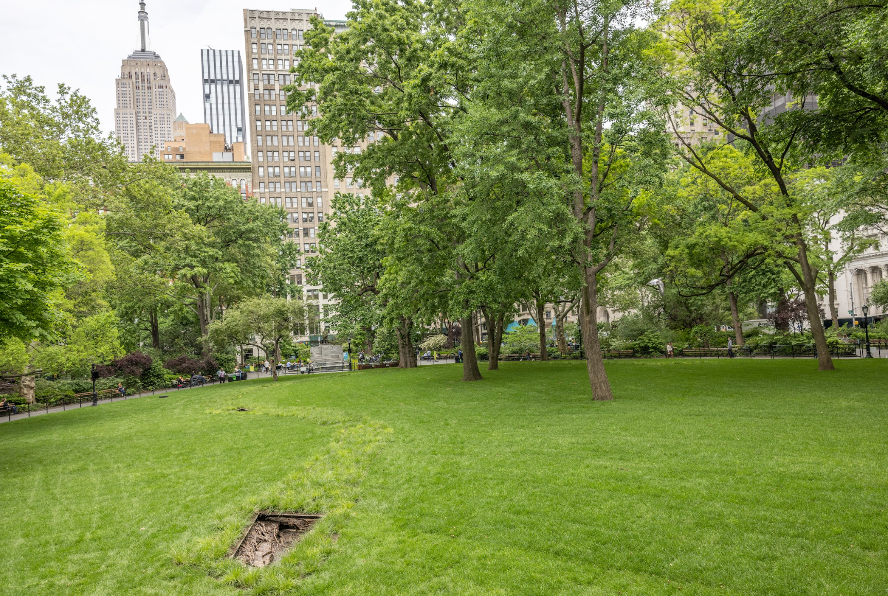 Alison Burstein (AB) To begin, we’d like to talk about the emergence of the piece. Shadow of the Sea was born out of an invitation to create a new work in dialogue with Cristina Iglesias’s exhibition Landscape and Memory at Madison Square Park. Iglesias’s exhibition comprised five bronze sculptural pools installed along the path of a creek that used to run through the site, reflecting on layers of buried histories. I was interested in creating a point of contact between your work and Iglesias’s exhibition based on what I recognized as a number of resonances with the themes you explore across your practice—including the connections between the deep past and present, the palimpsestic qualities of landscape, the potential of mapping as medium. Could you begin by speaking about some of your earlier projects, and reflect on the ways Shadow of the Sea built on the ideas or working methods you had been exploring previously?