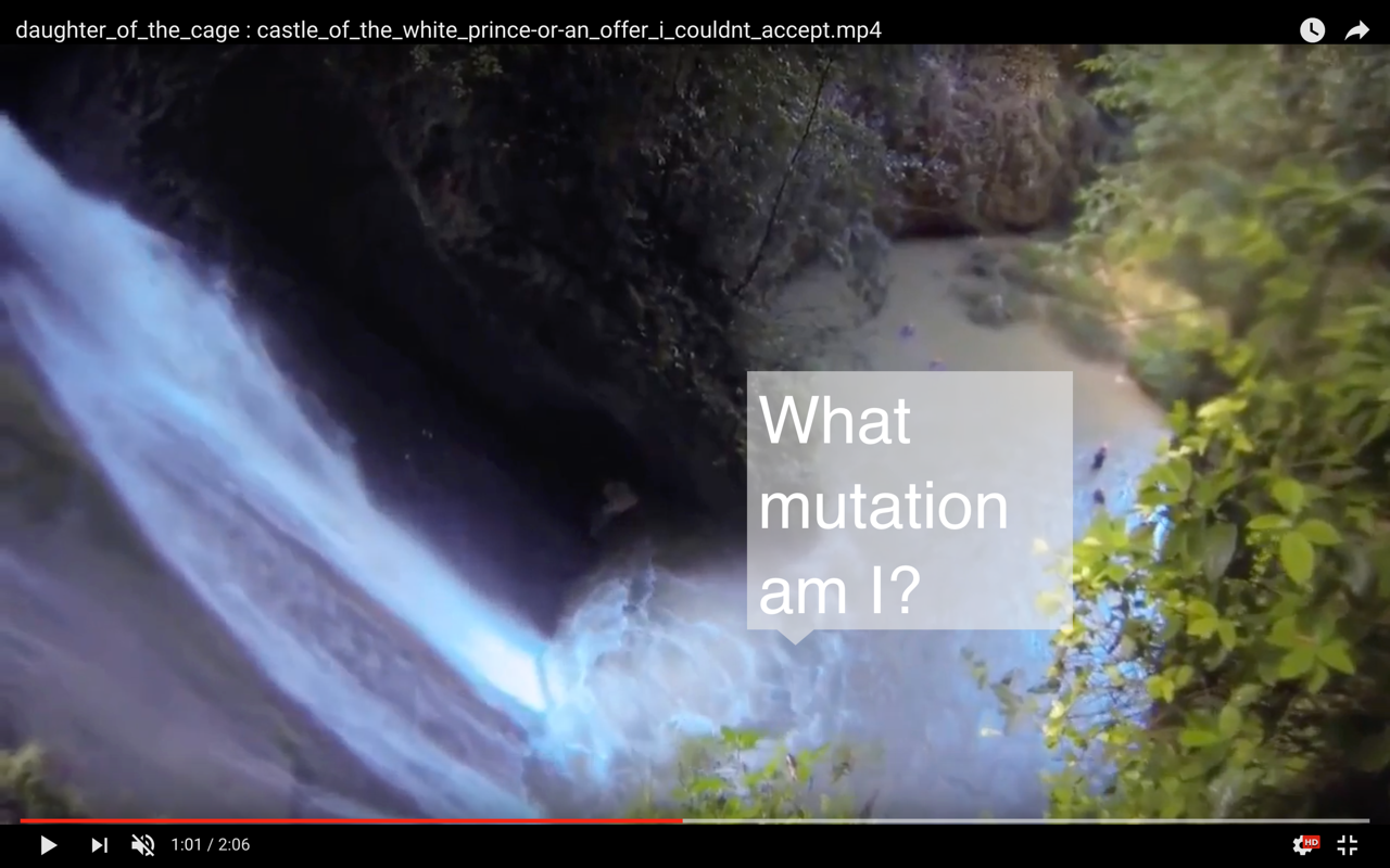 X. Around 2016, SHAWNÉ finished and uploaded “castle_of_the_white_prince” or an_offer_i_couldnt_accept.mp4. The layers of found video were collected from Youtube and Xtube and possibly other free video sites, and manipulated by the artist. The found videos were mostly edited on the now defunct, classic version of Youtube Creator Studio, an in-browser video editor for content creators. The music and text in this work was made by the artist. It has three distinct sections: an interrogation of “the good life” as described by Lauren Berlant—“the attrition of a fantasy, a collectively invested form of life” (4); a decision made, plunging into a waterfall; and the realization of an impasse, traveling through unintelligible space, dense fog, uncertainty.