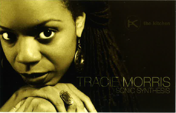 What is the economy of a radically improvisational synthesis? What happens when improvisation is put into action for liberatory measures? What are the possibilities of improvisation being considered as a mode of invention? I didn’t watch the documentation of Tracie Morris’s Sonic Synthesis, performed at The Kitchen in 1999. I witnessed the documentation of Tracie Morris’s Sonic Synthesis. The performance must be diligently taken in, actively engaged, and closely listened to. Perhaps, more aptly, I listened through the sonic substances of Morris’s utterances tethered to the ensemble of Graham Haynes, Marvin Sewell, Henry Schroy, Val Jeanty, Vernon Reid, and Melvin Gibbs, with the guidance/direction of Arthur Jafa.