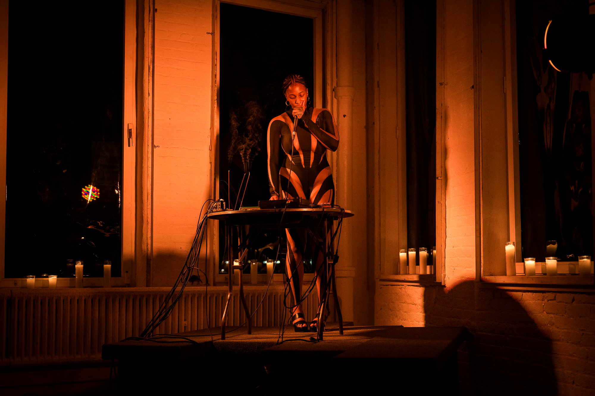 Warning: Please be advised some performances contain high-pitched sound. Earplugs are available at the door. The loft space will also be pre-scented with incense upon arrival. Entry: Late entry is permitted at any time dependent on capacity. There are stairs or ramp access to an open door marked with The Kitchen's name, behind which there is an elevator accessible to the public. The elevator enters directly into the loft. Seating: There is intermittent seating available throughout the loft space via couches, floor cushions, and fold-out chairs with backs. We are happy to accommodate and adjust for individuals who require wheelchair access upon request. Duration: Performances span a duration of three hours total. Visitors are encouraged to arrive at 6pm for the full program, and are welcome to move throughout the space freely during the evening. Exits: The space can be exited via elevator or stairs that take you to Bank street. Restroom: Our restrooms and dressing rooms are gender neutral. An ADA bathroom is available for our guest use in the courtyard, just one door down at Greenwich House Center for Older Adults. This bathroom will be available from 5:45-6pm. Please visit the facilities before entering the elevator to the loft.