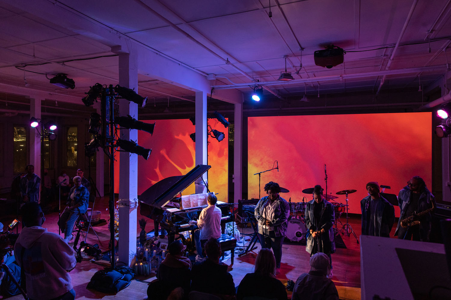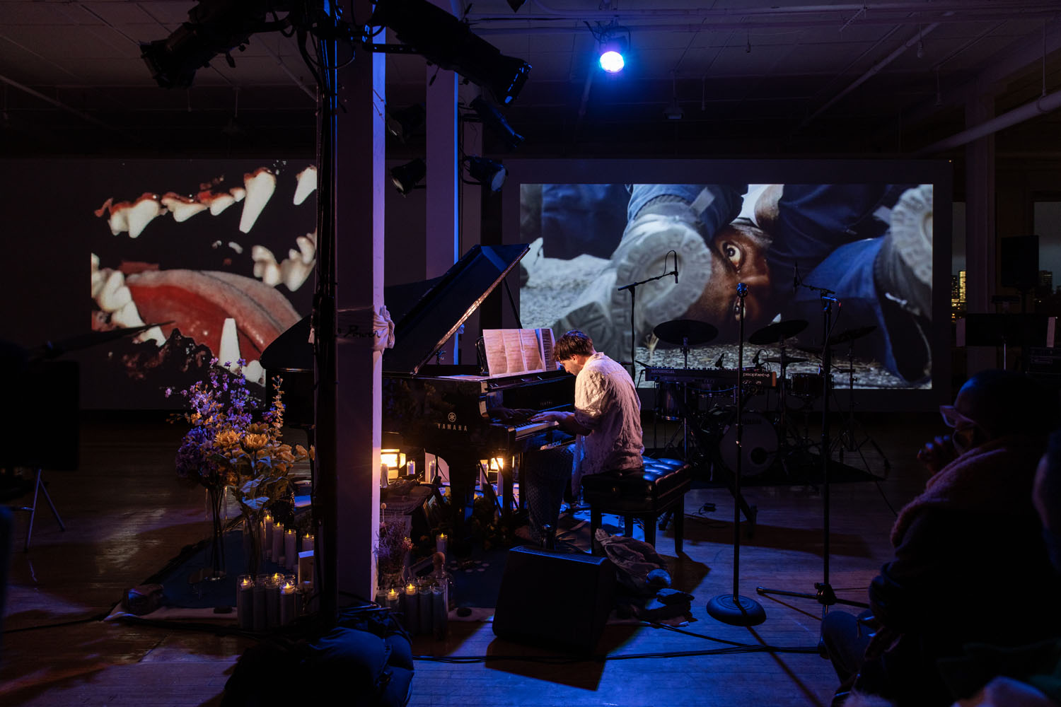 Acclaimed pianist-vocalist-composer and multidisciplinary artist Samora Pinderhughes uses music, visual arts, film, language, and creative process as abolitionist action. On the heels of his world premiere of The Healing Project, a multipronged work that springs from interviews the artist conducted with people of color in fifteen states surrounding experiences of incarceration and structural violence across the United States, Pinderhughes further expands his work of creating communal space for grieving and healing. One element of The Healing Project is his latest album, GRIEF. At Westbeth, Pinderhughes and collaborators will perform newly reimagined selections from the album within the installation, creating bold new performances that meld songcraft, ritual, and conversation alongside a rotating presentation of moving image works to be screened at intervals between live performances. The films serve as companion pieces to the GRIEF album, and present Pinderhughes’s work with his collective RSCK (alongside Christian Padron, Kassim Norris, and Ray Neutron), as well as the results of long-standing collaborations with filmmakers Christian Padron, Josh Begley, Vashni Korin, and Daniel Pfeffer.